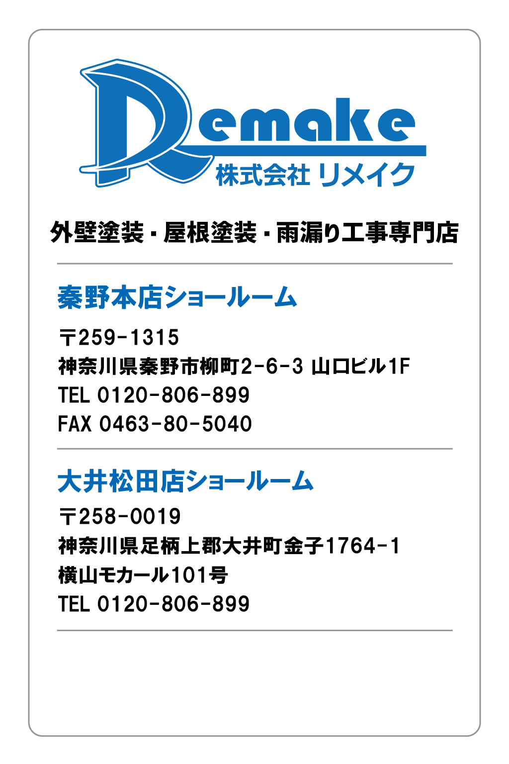 秦野市の外壁塗装・屋根工事・雨漏り工事専門店 株式会社リメイク