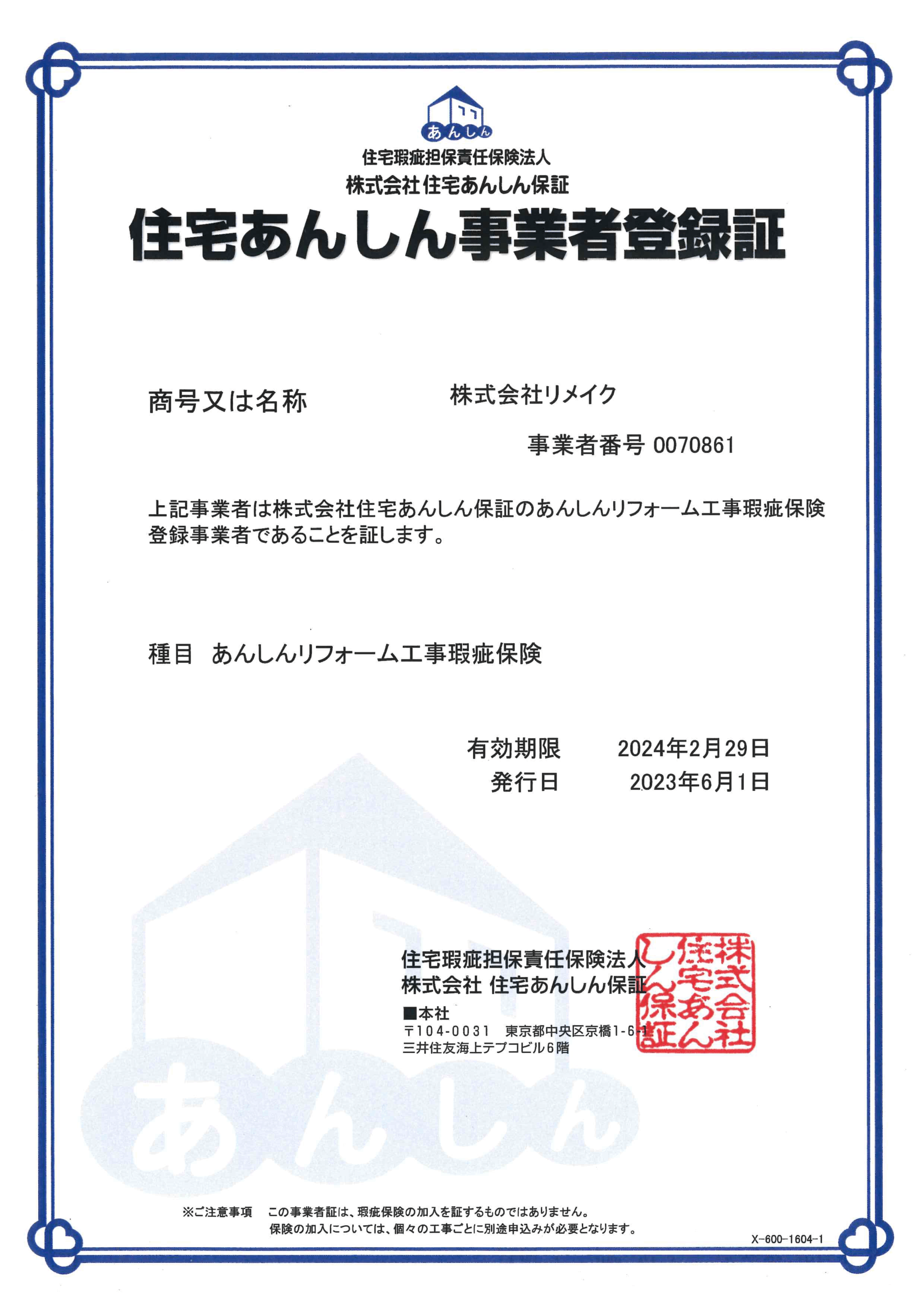 住宅あんしん事業者登録証は、消費者が安心して塗り替えリフォームを行うことができる環境を整えるために、国土交通省が創設した制度です。この制度は、一定の要件を満たす住宅リフォーム事業者の団体に登録され、安心の証としてマークを表示することができます。登録された事業者は、消費者のための相談窓口を設け、必要な教育研修を行い、契約時には内訳を明らかにした見積書を交付し、瑕疵保険に加入しています。