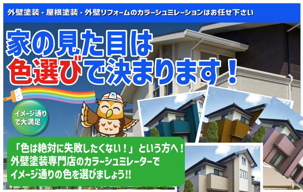 自分好みの色、ご近所の家と調和する色、個性的な色など様々なパターンを試してみましょう!