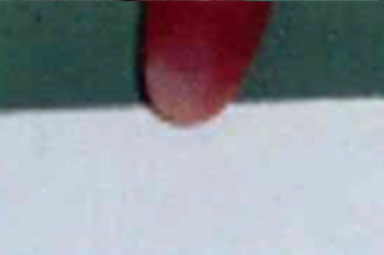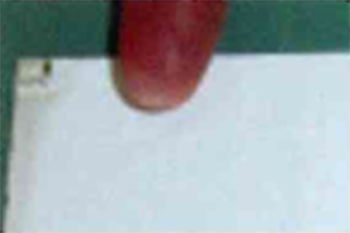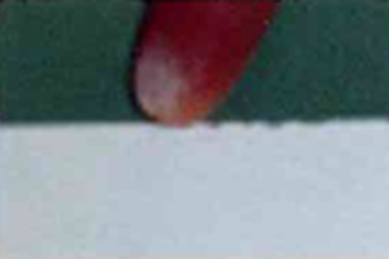 塗膜の劣化が進むと、写真のように塗膜表面に白亜化が見られ、光沢が低下し、色あせをおこしますが、無機UVコートは、指でこすっても白くなるような大きな変化はありません。