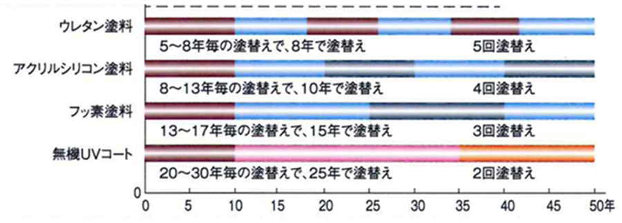 無機UVコートの高耐候性により、塗り替えリフォームの時期の延長が可能です。