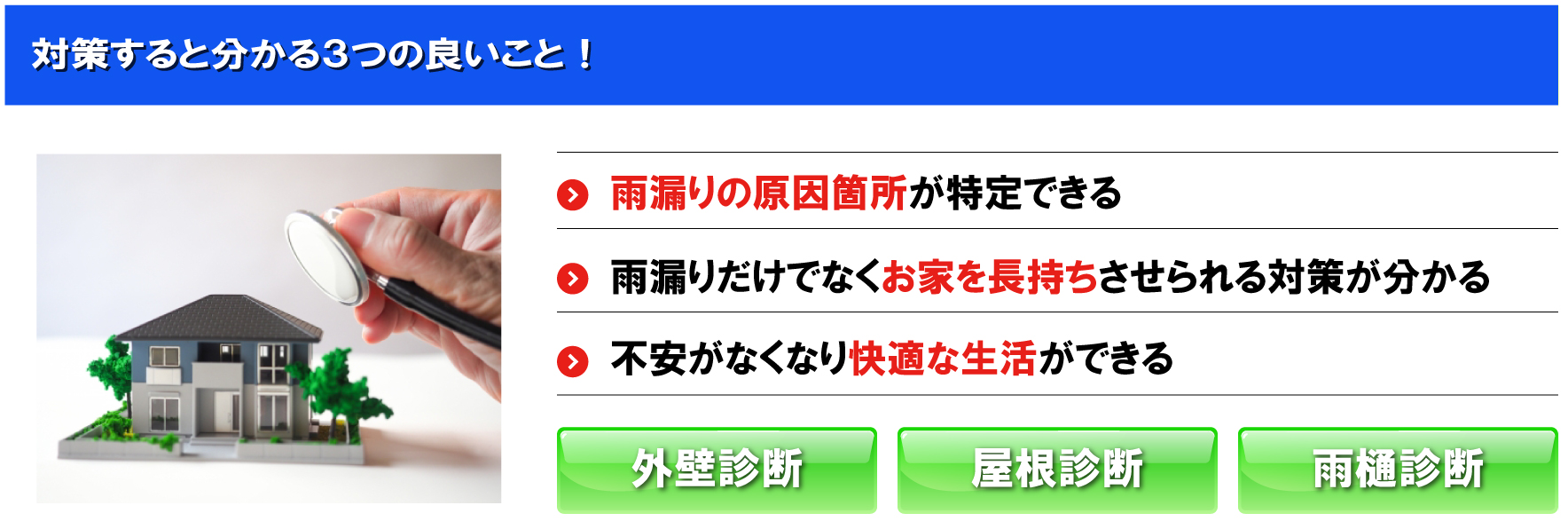 プロが診断することで雨漏りの本当の原因を見つけ、最善の対策を打つことができます。